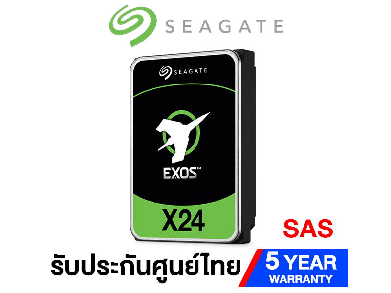 HDD ENTERPRISE (SAS), Transfer Rate 285 MB/s, 7200RPM 512MB - Seagate Exos X24 ฮาร์ดดิสก์เกรดองค์กร (Enterprise) ที่มีความจุสูง พร้อมเทคโนโลยีการบันทึกข้อมูลแบบ Helium-sealed มอบความเสถียรสูงสุดและประหยัดพลังงานสำหรับการใช้งานหนักใน Data Center มีให้เลือกการแบบ SATA และ SAS มาพร้อมเทคโนโลยี Seagate Secure และค่า MTBF สูง ตอบโจทย์การทำงานแบบ 24/7 ที่ต้องการความทนทานและการปกป้องข้อมูลระดับสูงสุด