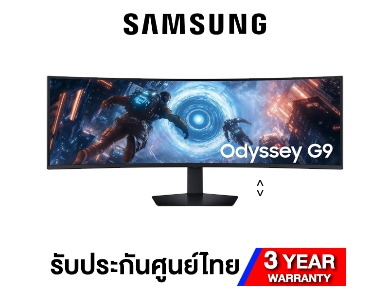 49 นิ้ว, 5120x1440, VA, 144Hz, HDR, AMD FreeSync - Samsung Odyssey G9 G91F (LS49FG912EEXXT) จอเกมมิ่งจอโค้งขนาด 49 นิ้ว สัดส่วน 32:9 ความละเอียด Dual QHD (5120x1440) ที่ใช้พาเนล VA ให้พื้นที่การเล่นเกมและทำงานกว้างขวางเสมือนมีจอ สองจอวางต่อกันโดยไม่มีขอบกั้น. โดดเด่นด้วยความโค้งระดับ 1000R ที่โอบรับสายตาได้สมจริงที่สุด พร้อมรีเฟรชเรท 144Hz และความเร็วตอบสนอง 1ms (GtG) รองรับเทคโนโลยี AMD FreeSync Premium Pro เพื่อการเล่นเกมที่ลื่นไหลและไร้รอยฉีกขาดของภาพ. เสริมความสวยงามด้วยมาตรฐาน VESA DisplayH