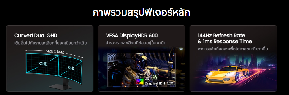 27 นิ้ว SAMSUNG LS27FG530EEXXT MONITOR - 2K QHD IPS 200Hz HDR FreeSync