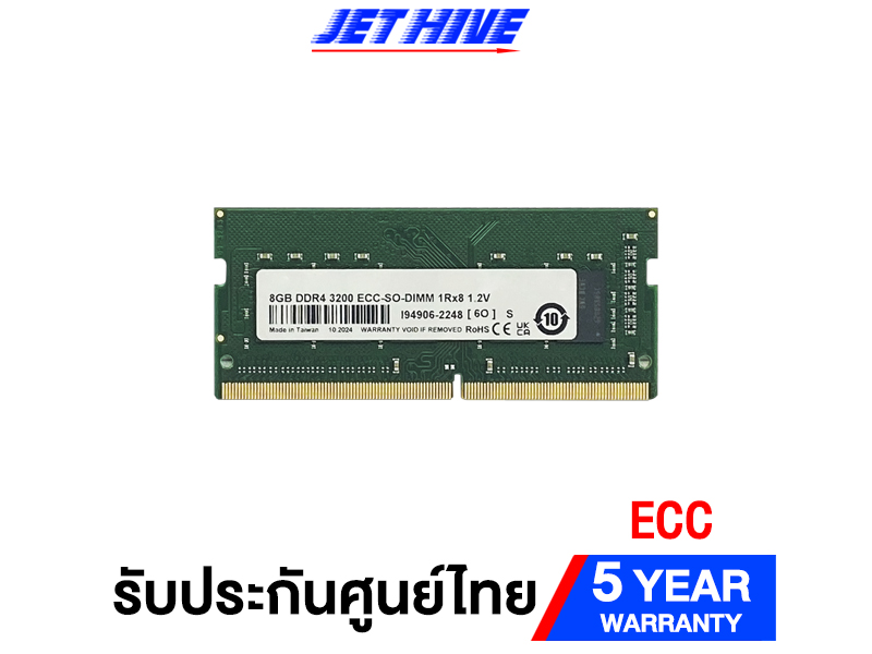 โมดูลหน่วยความจำ DDR4 ชนิด ECC Unbuffered SODIMM ความเร็ว 3200 MHz, Voltage 1.2V, CAS Latency CL22, SODDIMM for NAS Synology, Qnap, high-end embedded Desktops, Laptops, Server and Workstation.