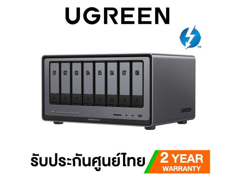 NAS 8 Bay, Intel i5 1235u 10Core 4.4Ghz , DDR5 8GB - UGREEN NASync DXP8800 Plus ก้าวข้ามขีดจำกัดด้วยขุมพลัง Intel Core i5 (12th Gen) และพื้นที่จัดเก็บข้อมูลจุใจถึง 8-Bay ออกแบบมาเพื่อรองรับโปรเจกต์ขนาดใหญ่และการสำรองข้อมูลระดับองค์กรอย่างมืออาชีพ มาพร้อมพอร์ต 10GbE LAN แบบคู่ และ Thunderbolt 4 เพื่อการส่งผ่านข้อมูลที่รวดเร็วที่สุด พร้อมระบบระบายความร้อนอัจฉริยะในตัวเรือนอลูมิเนียมเกรดพรีเมียมที่ทั้งแข็งแกร่งและเรียบหรู
