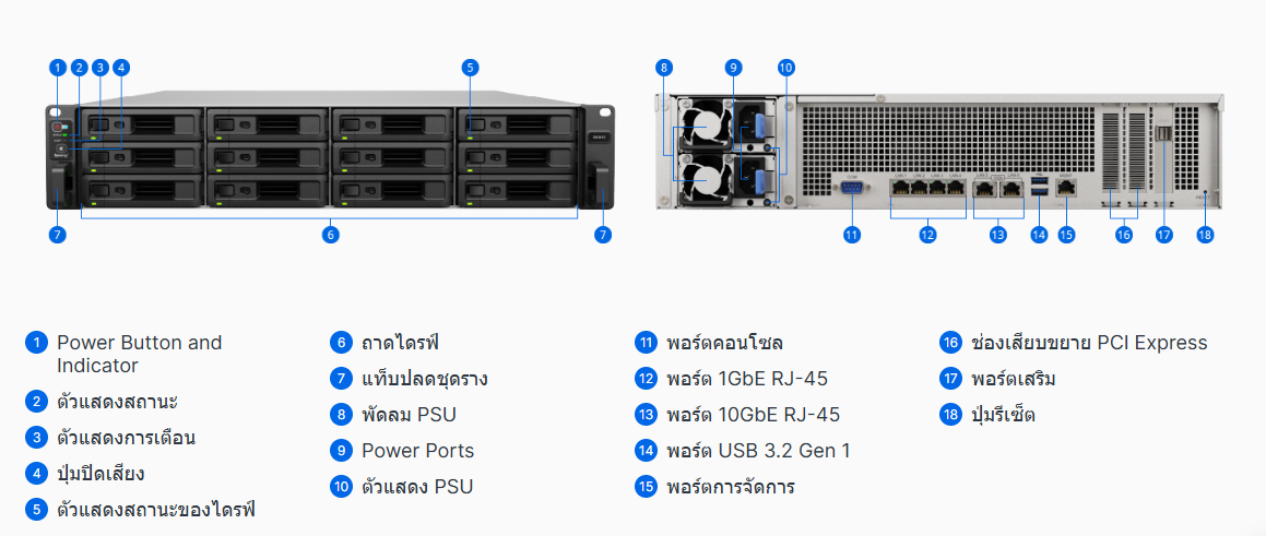 NAS 12 Bay, Intel Xeon D-1541 8Core 2.7Ghz , DDR4 8GB, Rack 2U - Synology RackStation RS3621xs+ คือ NAS แบบ Rackmount 2U ระดับองค์กรที่มีช่องใส่ไดรฟ์ 12 Bay (ขยายได้สูงสุด 36 Bay). ขับเคลื่อนด้วยซีพียู Intel Xeon 8-Core และมาพร้อม 10GbE ในตัว พร้อมหน่วยความจำ ECC และ Redundant Power Supply เพื่อประสิทธิภาพสูงและความเสถียรสูงสุด. เหมาะสำหรับเวิร์กโหลดที่ต้องใช้การคำนวณมาก, การจำลองเสมือน (Virtualization), และการจัดการข้อมูลจำนวนมหาศาล.