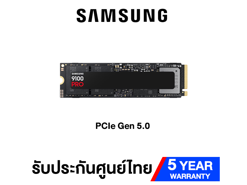 Read 14,700MB/s, Write 13,300MB/s, 600TBW, M.2 NVMe 2280 - Samsung 9100 PRO เป็น SSD รุ่นใหม่ที่ใช้การเชื่อมต่อ PCIe 5.0 x4 และ NVMe 2.0. ให้ความเร็วในการอ่านข้อมูลสูงสุด และ เขียนข้อมูลสูง เหมาะสำหรับผู้ใช้งานระดับสูงที่ต้องการประสิทธิภาพสูงสุด ไม่ว่าจะเป็นนักเล่นเกม, ครีเอเตอร์, หรือการประมวลผล AI.