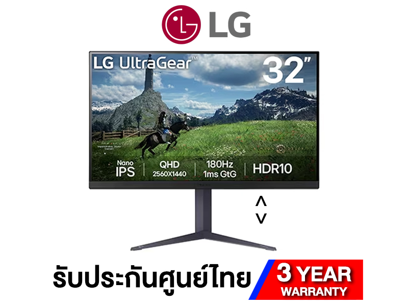 31.5" 2560x1440 Nano IPS 180Hz HDR10 DCI-P3 98% Adaptive Sync - อัพเกรดความเร็ว มาตรฐานใหม่ เราได้ยกระดับมาตรฐานความเร็วของ UltraGear เป็น 180Hz คุณสามารถเพลิดเพลินกับภาพที่คมชัดเป็นพิเศษและราบรื่นด้วยอัตรารีเฟรช 180Hz ซึ่งโหลดภาพ 180 ครั้งในหนึ่งวินาที
