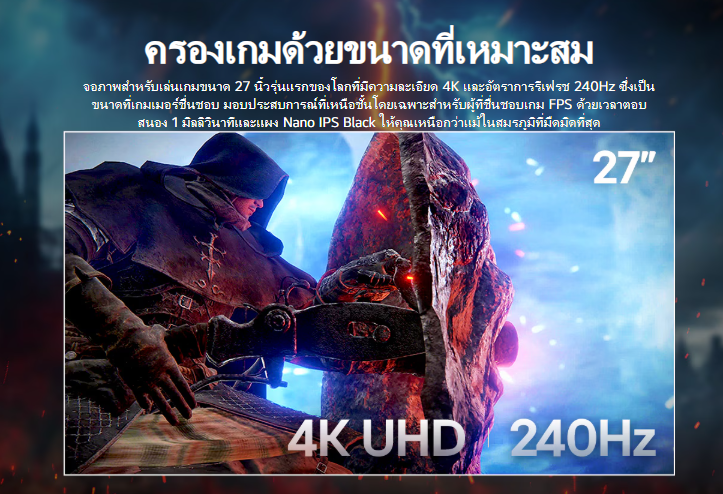 31.5 นิ้ว, 3840x2160, IPS, 144Hz, DCI-P3 95%, HDR, 1.07B - LG UltraGear 32G810SA-W เป็นจอเกมมิ่งขนาด 32 นิ้ว ที่ใช้พาแนล OLED ความละเอียด 4K (UHD) มาพร้อมอัตรารีเฟรช 144Hz และตอบสนองเร็ว 1ms. จุดเด่นคือระบบปฏิบัติการ webOS ในตัว ทำให้สามารถเข้าถึงแอปสตรีมมิ่งต่างๆ ได้โดยตรง ไม่ต้องต่อกับคอมพิวเตอร์. นอกจากนี้ยังมีเทคโนโลยี AI Picture Pro และ AI Sound Pro ที่ช่วยปรับคุณภาพภาพและเสียงให้เหมาะสม และยังสามารถควบคุมได้ด้วยรีโมทคอนโทรล.