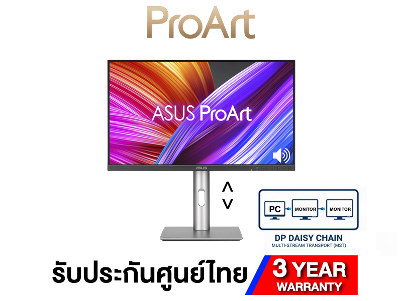 23.8 นิ้ว, 2560 x 1440, IPS, 75Hz, DCI-P3 95%, HDR, 1.07B - ASUS ProArt PA24ACRV คือมอนิเตอร์ระดับมืออาชีพขนาด 23.8 นิ้ว ความละเอียด QHD (2560x1440) ที่เน้นความแม่นยำของสี. รองรอการต่อพ่วงจอหรือทีเรียกว่า daisy chain ผ่านการรับรอง Calman Verified และปรับเทียบจากโรงงานด้วยค่า Delta E < 2 พร้อมขอบเขตสี 95% DCI-P3 เหมาะสำหรับงานตัดต่อวิดีโอและกราฟิก. มีพอร์ต USB-C ที่รองรับ การถ่ายโอนข้อมูลความเร็วสูง DisplayPort และ สามารถจ่ายไฟได้สูงถึง 96W