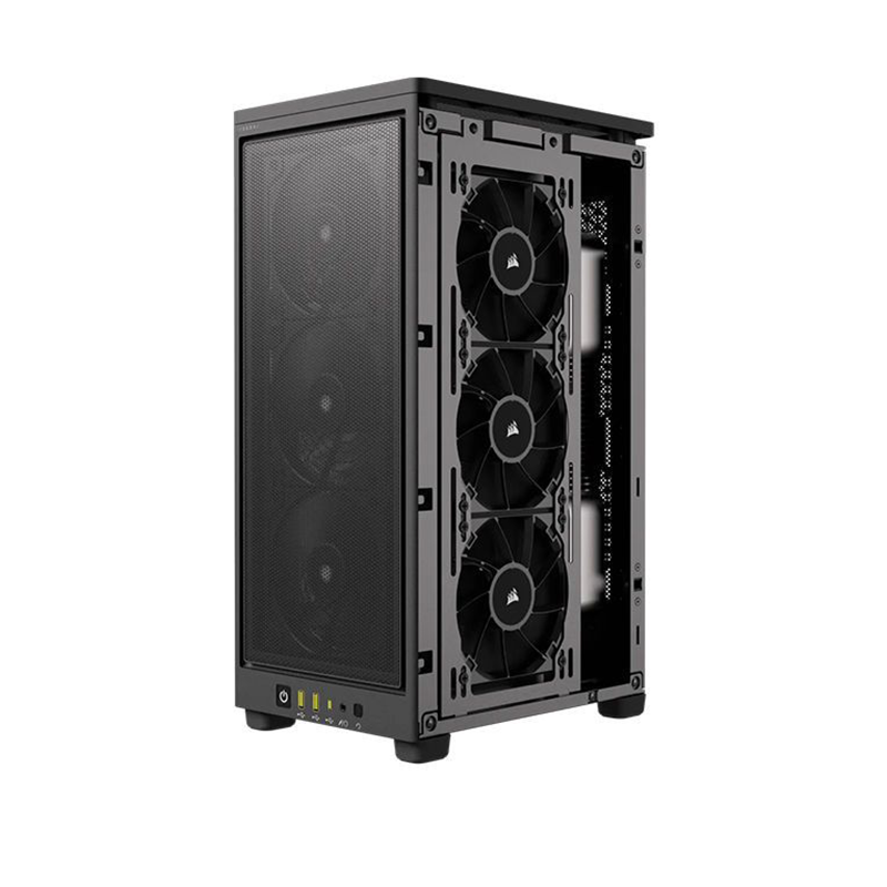 CORSAIR 2000D RGB AIRFLOW เป็นเคสขนาดเล็กแบบ Mini-ITX พร้อมไฟ RGB ที่สดใสซึ่งขับเคลื่อนโดยซอฟต์แวร์ CORSAIR iCUE และการระบายความร้อนที่ยอดเยี่ยมด้วยแผงตาข่ายเหล็กการไหลเวียนของอากาศสูง
