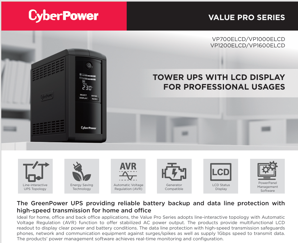 ข้อมูลเพิ่มเติม: https://www.cyberpower.com/th/en/product/sku/vp700elcd#specification