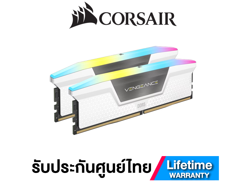 Corsair Vengeance RGB DDR5 แรมพีซีระดับพรีเมียมที่ผสานความแรงยุคใหม่เข้ากับแสงไฟ Dynamic Ten-Zone RGB อันสวยงาม ปรับแต่งได้อิสระผ่านซอฟต์แวร์ iCUE เพื่อความโดดเด่นในสไตล์คุณ มาพร้อมเทคโนโลยี Onboard Voltage Regulation และรองรับ Intel XMP 3.0 ช่วยให้การโอเวอร์คล็อกง่ายและเสถียรยิ่งขึ้น มอบประสิทธิภาพสูงสุดสำหรับการเล่นเกมและการสร้างสรรค์ผลงาน