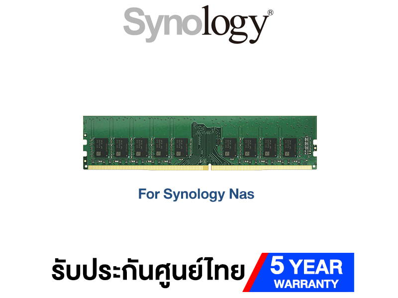 โมดูลหน่วยความจำ DDR4 ของ Synology โปรดเลือกใช้โมดูลหน่วยความจำ Synology ของแท้จากตัวแทนจำหน่ายในประเทศอยู่เสมอ เพื่อความเข้ากันได้และความน่าเชื่อถือสูงสุด การติดตั้งโมดูลหน่วยความจำที่ไม่ใช่ของ Synology สามารถก่อให้เกิดความไม่เสถียรของระบบหรือความล้มเหลวในการบูทได้ Synology จะไม่รับประกันผลิตภัณฑ์หรือให้การสนับสนุนทางเทคนิคอย่างครบถ้วน หากมีการใช้หน่วยความจำที่ไม่ใช่ของ Synology ในการเพิ่มหน่วยความจำ